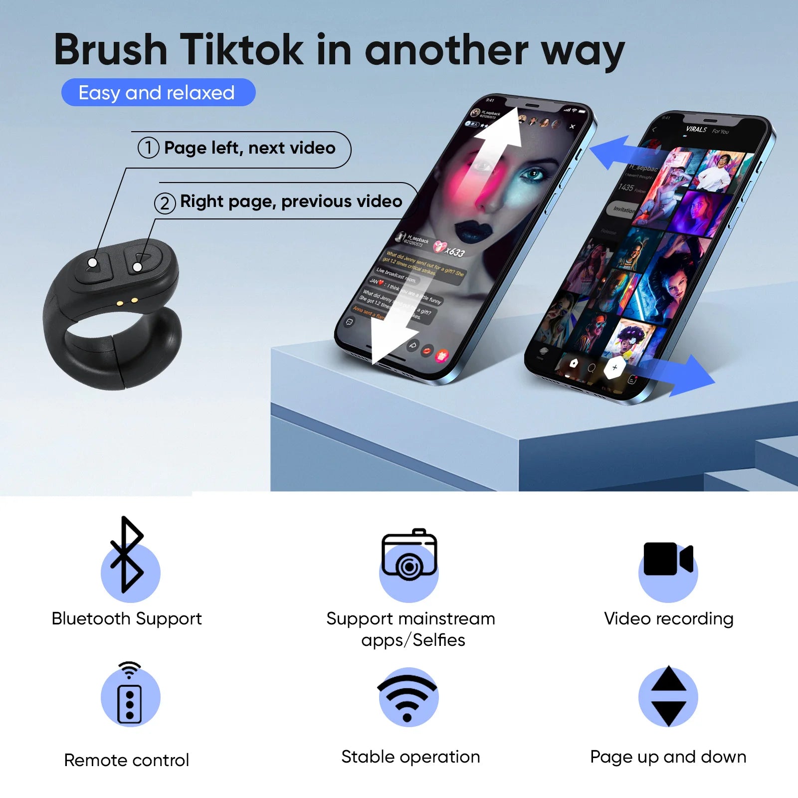 Anel Controlo Remoto Bluetooth 60h - Page Turner Selfie Obturador Câmera Portátil Universal - WAYAMY TECH